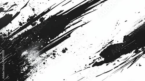 Abstract black ink splashes on a white background, creating a dynamic artistic effect