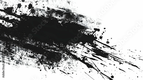 Abstract black ink splatter on white background, creating a dynamic visual effect for artistic use