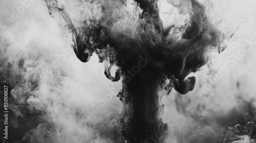 Abstract Black Ink Swirling In Water