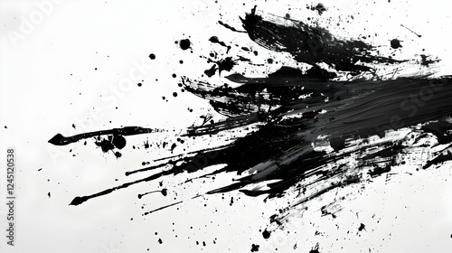Abstract black paint splash on a white background, creating a dynamic artistic effect