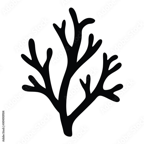 Abstract Black Seaweed Silhouette Isolated on White Background Detailed Illustration