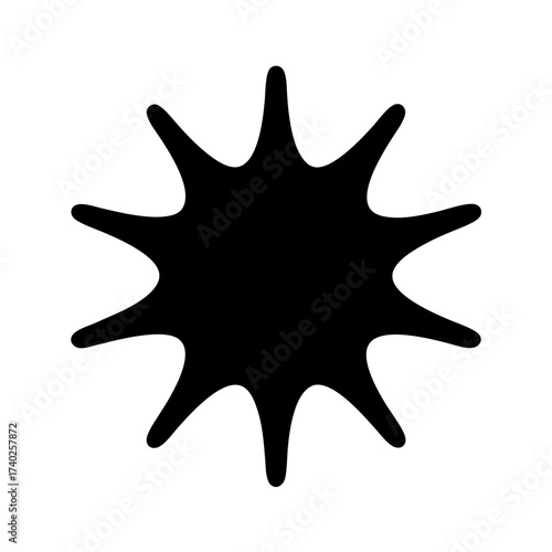 Abstract black starburst shape with rounded edges and multiple points, simple design