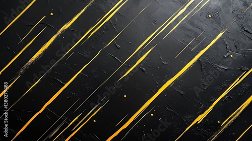 Abstract Black Texture with Bold Yellow Diagonal Lines and Splatters