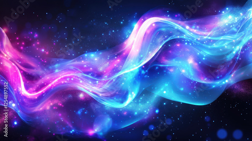 Abstract blue and purple light wavy shapes create futuristic atmosphere, evoking sense of wonder and creativity in vibrant cosmic space