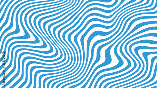 Abstract blue and white wavy stripes create a mesmerizing and dynamic optical illusion pattern