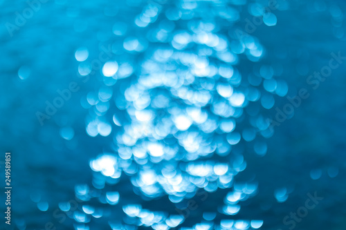 abstract blue background with bokeh lights. Defocused or blurred blue water background.