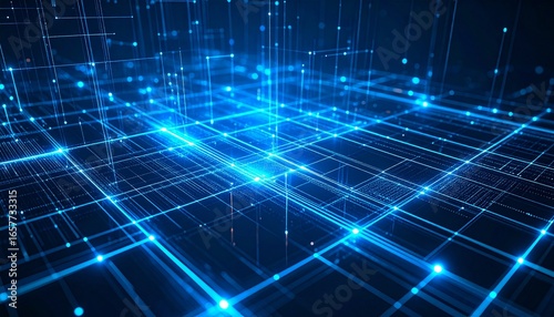 Abstract blue digital network background with glowing lines and points, representing modern technology.