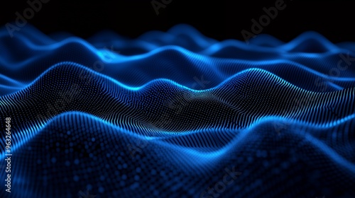 Abstract blue digital waves on a black background.
