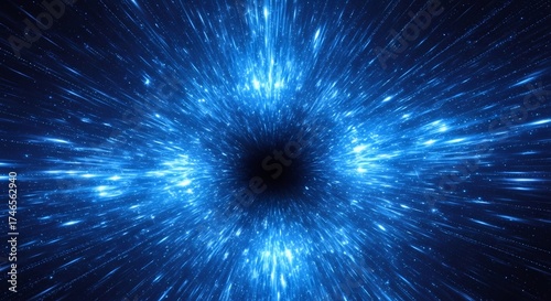 Abstract Blue Energy Explosion Vortex Portal, Cosmic Space Travel, Sci-Fi Background