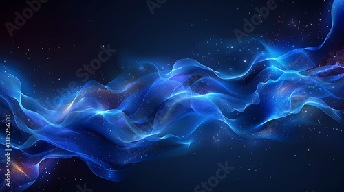 Abstract blue ethereal flowing waves on dark background.