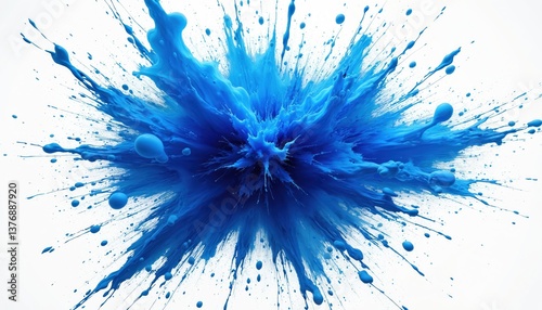 Abstract blue explosion on white background. Dynamic artwork features vivid colors, intricate splash, motion, energy. Bursting paint, liquid ink, artistic illustration, perfect for design, posters.