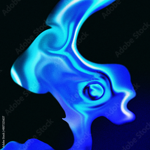 Abstract Blue Fluid Shape, Vibrant Neon Light Artwork