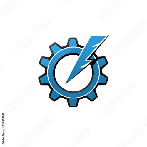 Abstract blue gear with lightning bolt logo design