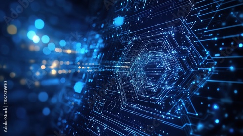 Abstract Blue Hexagon Technology Background with Communication Lines