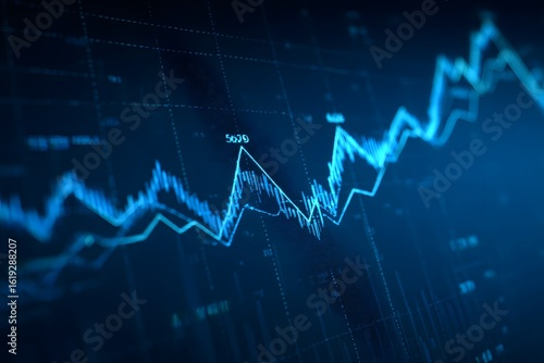 Abstract blue hologram of financial graphs and charts, glowing with data points on a dark background. The concept symbolizes the power to convey information in digital form