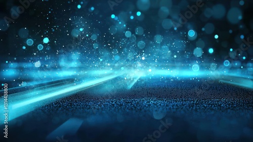 Abstract Blue Light And Particle Surface With Futuristic Technology Background