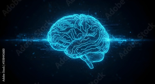 Abstract blue light x-ray of the human brain revealing intricate medical anatomy and neurological power