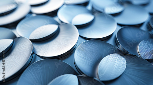 Abstract Blue Metallic Discs with Grooves Pattern Background Texture Design Close Up