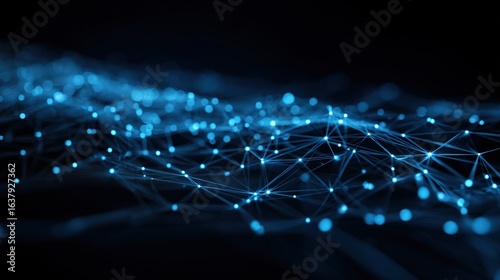 Abstract Blue Network Visualization: Data Connection, Artificial Intelligence, and Futuristic Technology Concept