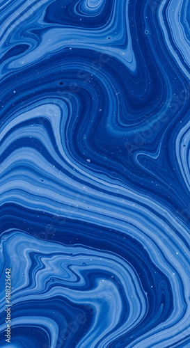 Abstract blue paint swirls create a dynamic, flowing texture with subtle light and dark variations, ideal for background or design element
