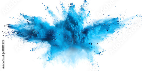 Abstract blue powder explosion on white background, perfect for design projects, showcasing energy and movement.