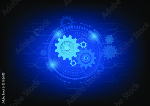 Abstract blue technology background with circle tech ,gear and polygonal, Vector illustration