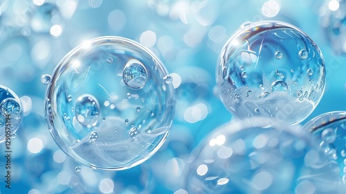 Abstract Blue Water Bubbles Close up Macro Shot of Liquid Spheres Sparkling Texture Clean Purity