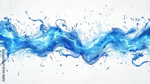 Abstract Blue Water Splash with Electric Energy Dynamic Flowing Liquid Energy Concept