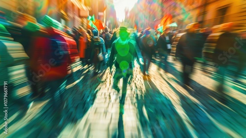 Abstract Blurred Image of a Crowd Moving Through a City Street