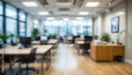 Abstract Blurred Office Interior Background Creating Soft Defocused Working Space for Modern Corporate Business Concepts