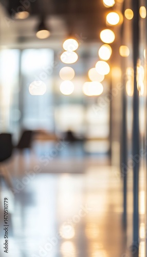 Abstract bokeh effect in a blurred open office space creating a modern minimalist atmosphere
