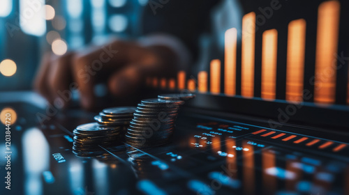 Abstract business Financial charts show a significant increase in profits in the stock market.This is driven by higher interest rates and continued growth. In the innovation world network of financial