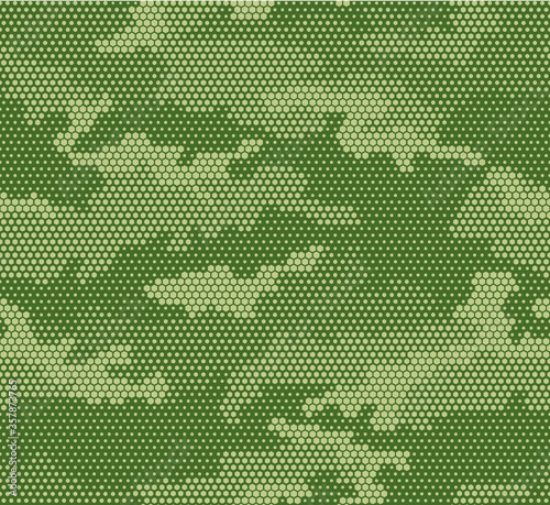Abstract camouflage seamless pattern. Hexagon (honeycomb) texture. Green and beige color.