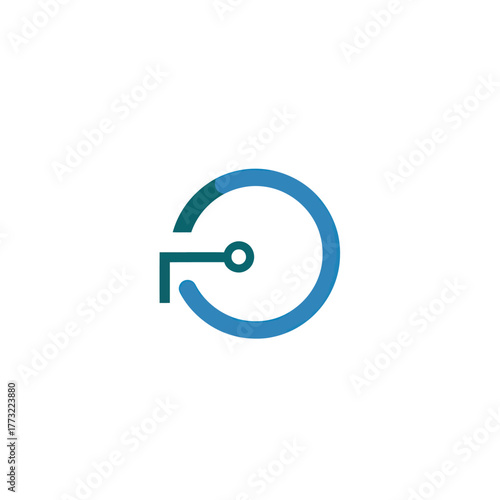Abstract Circular Technology Symbol with Green and Blue Accents.