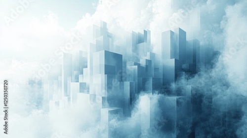 Abstract Cityscape Floating in Clouds, Modern Architecture and Mist