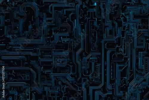Abstract close-up of a glowing blue digital circuit board, showcasing intricate connections and technological design on a black background.