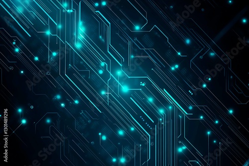 Abstract close-up of a glowing blue digital circuit board, showcasing intricate connections and technological design on a black background.
