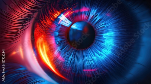 Abstract Close-Up of Blue and Red Human Eye with Vibrant Details