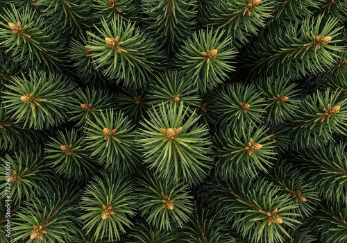 Abstract Close-up of Evergreen Fir Tree Needles, Christmas Holiday Evergreen Background