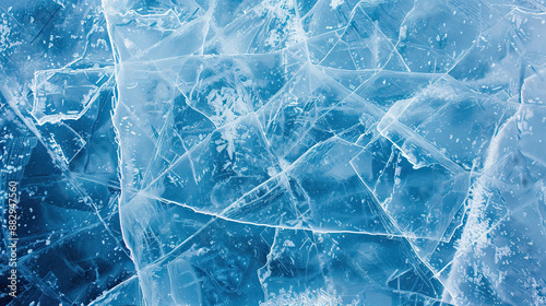 Abstract cold Ice Background, Blue Background with Cracks on Ice Surface, Frozen Texture, Winter Design Concept