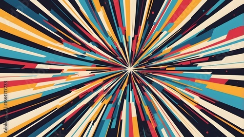 Abstract Colorful Geometric Pattern with Radial Lines on White Background