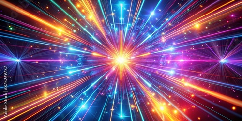 Abstract Colorful Laser Light Show with Bright Glowing Stars and Dynamic Beams