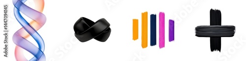 Abstract colorful shapes and patterns on a isolated against a transparent background..