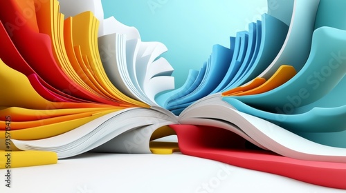 Abstract colorful shapes flow and curve in a vibrant and dynamic composition.