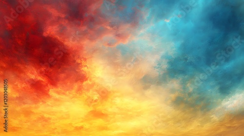 Abstract Colorful Sky Painting Red Yellow Blue Clouds