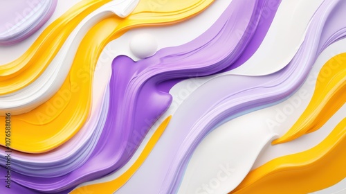 Abstract colorful swirls of paint in vibrant hues of purple, yellow, and white.