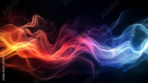 Abstract Colorful Waves with Sparkles Against a Black Background