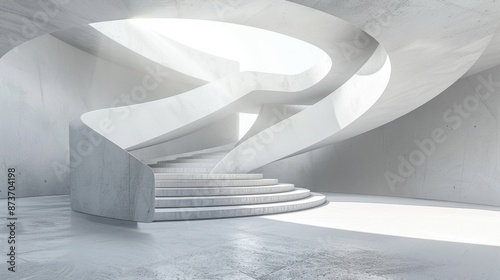 Abstract Concrete Spiral Staircase in Modern Architecture