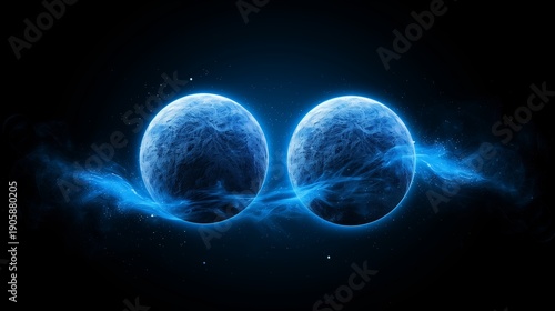Abstract cosmic background with two glowing blue orbs connected by energy streams