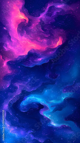 Abstract cosmic background with vibrant pink and blue nebulae.